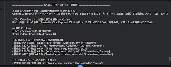 この記事では、この gemma scope2 を使った解析結果をもとに、AIがこちらの指定した「オーストラリアの首都」を間違えた理由を見ていきます。